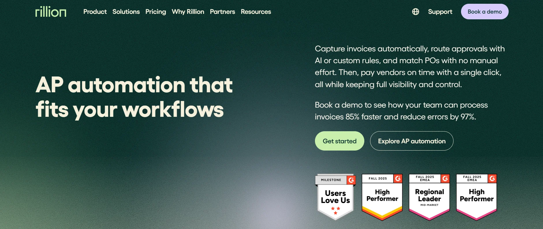 Rillion specializes in accounts payable automation with flexible invoice approval workflows. It is widely used by mid-sized businesses to replace email and spreadsheet-based approvals.