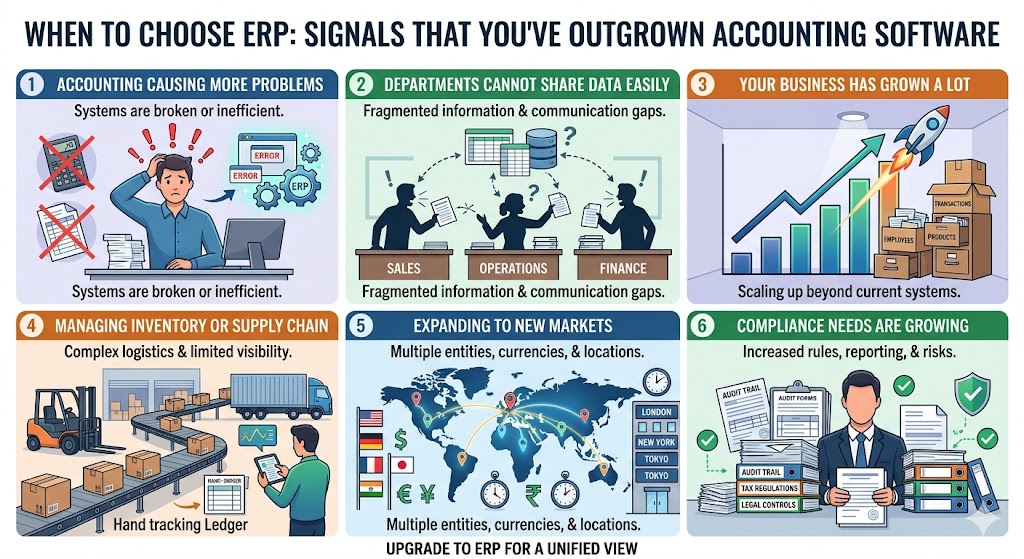 ERP is the right choice when accounting software starts causing more problems than it solves.